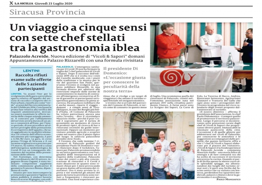 Un'intera pagina dedicata alla nostra manifestazione enogastronomica "Vicoli&Sapori" giunta alla V edizione.